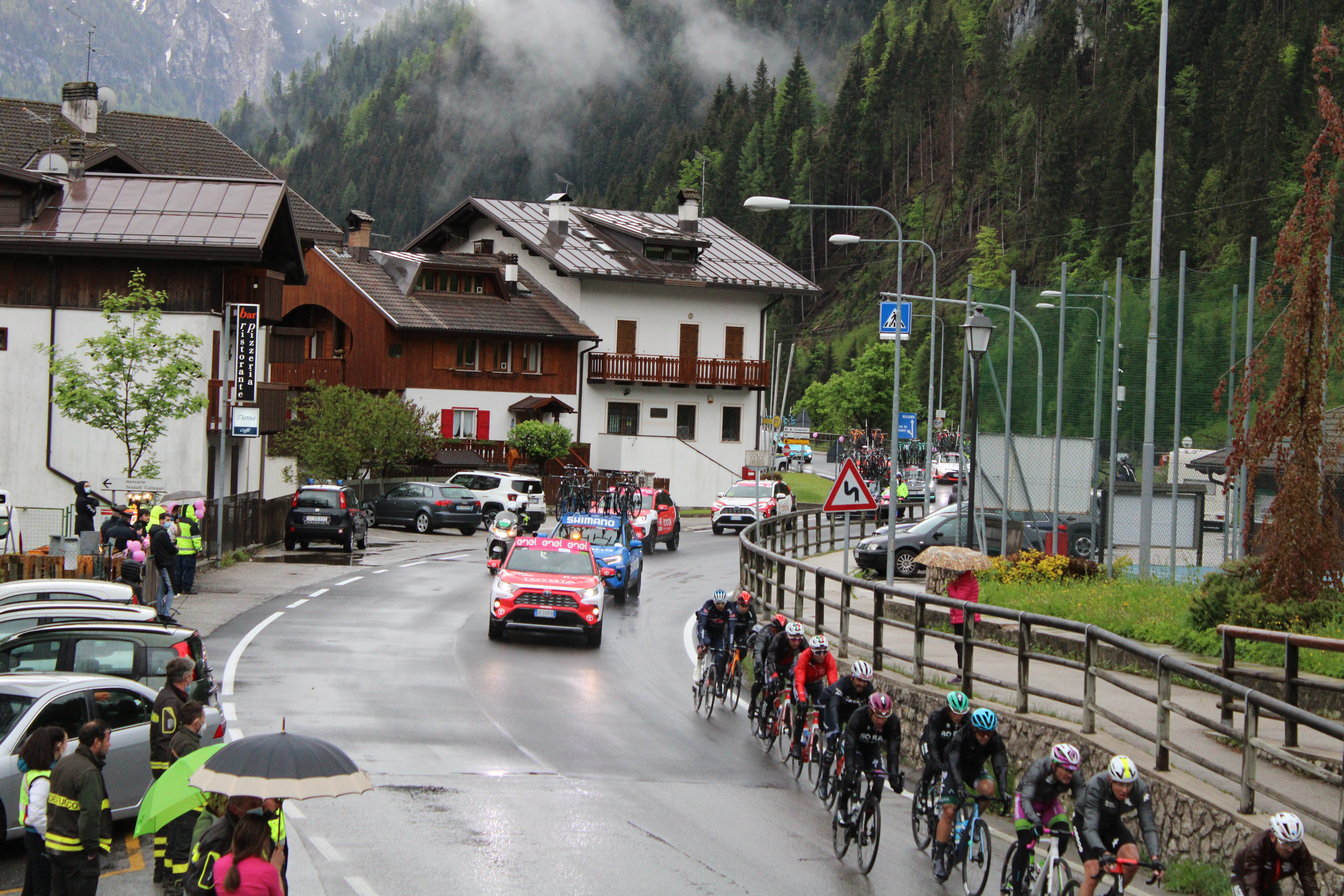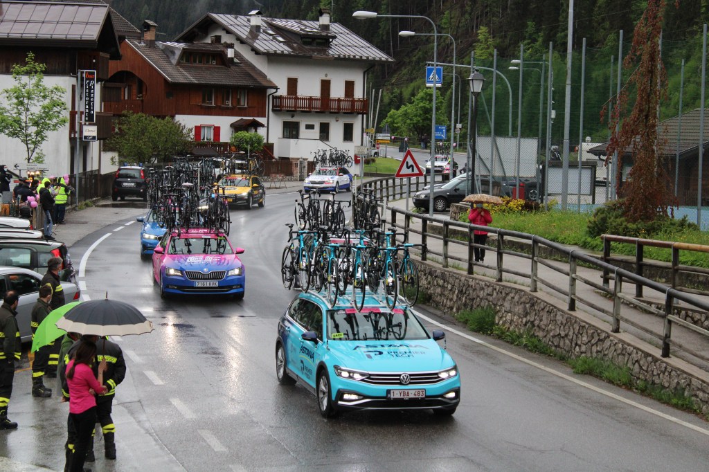 Dopo un periodo d’assenza il Giro d’Italia è tornato sulle strade della nostra vallata, in quello che viene classicamente definito tappone Dolomitico. Situazioni meteo poco favorevoli per i corridori che hanno dovuto fare i conti con una pioggia persistente che ha lasciato loro poca tregua. Condizioni meteo che hanno spinto anche gli organizzatori a rivedere il tracciato del percorso, annullando la salita del passo Fedaia; i ciclisti hanno quindi preso la strada che porta al Passo Falzarego direzione Passo Giaù.